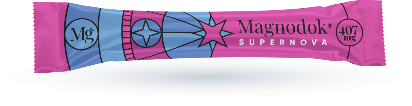В Магнодок® Supernova содержится более 3000 мг магния в виде солей лактата и цитрата, что соответствует 407 мг элементарного магния (97 % РНП для не беременных и 90,5% РНП для беременных во 2-3 триместре и кормящих).